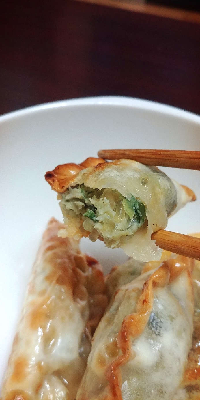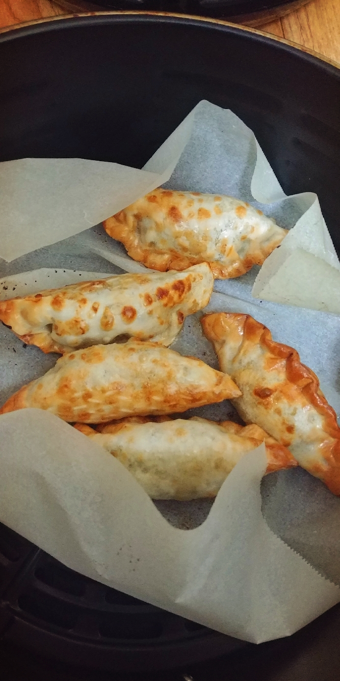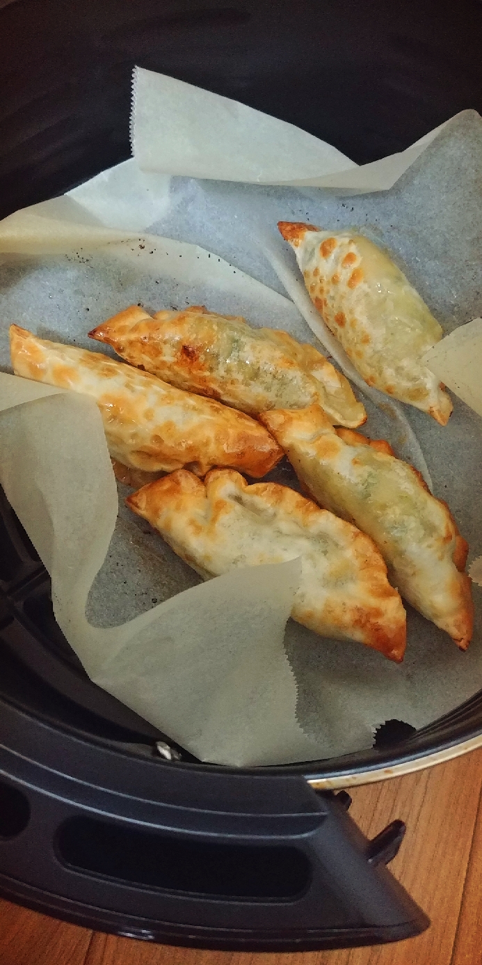 1. 종이 호일을 깔고 냉동만두 5~6개를 올려넣는다.