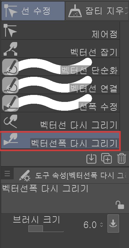 여기서 벡터선폭 다시 그리기를 선택한다.(빨간 네모박스 안)
