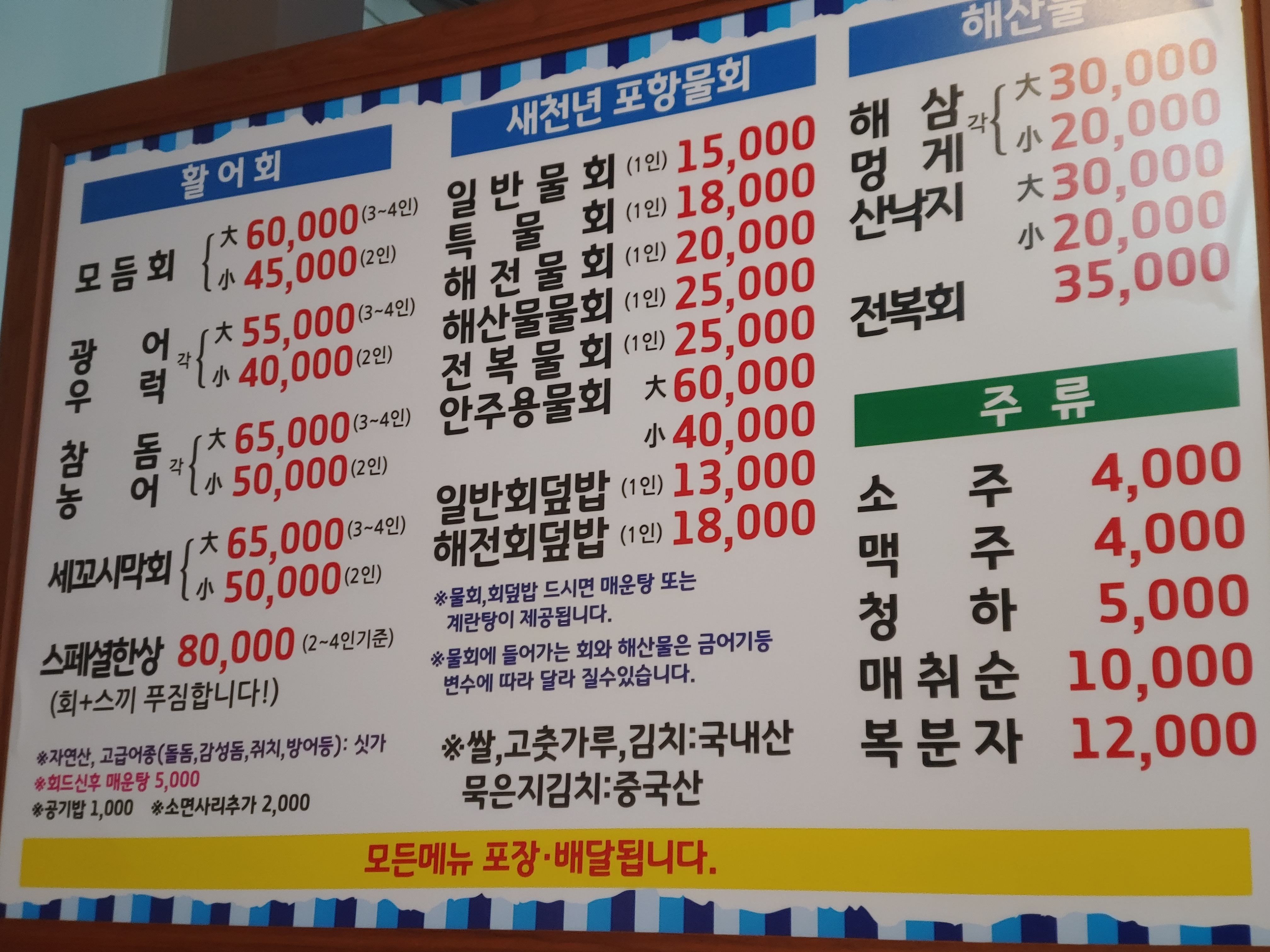 월평동에 위치한 새천년 포항물회