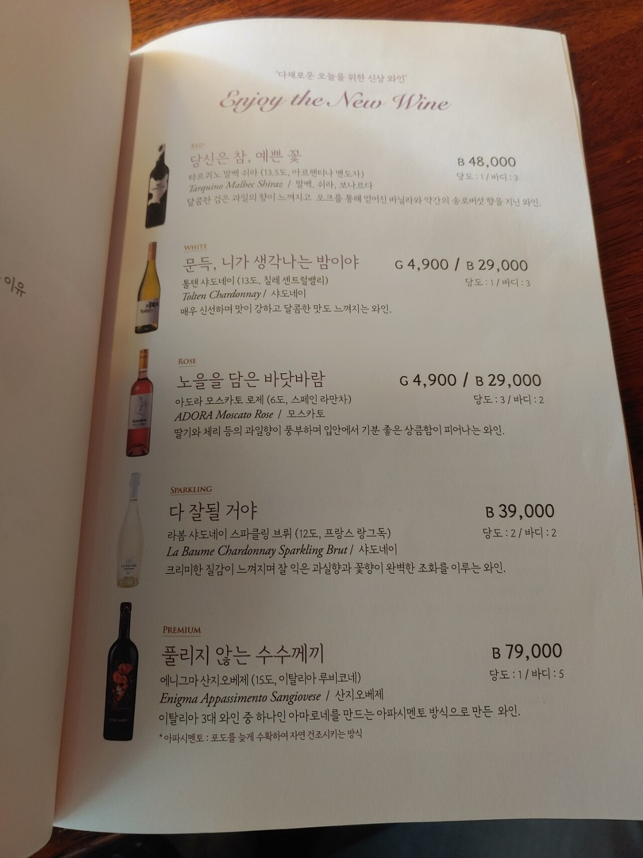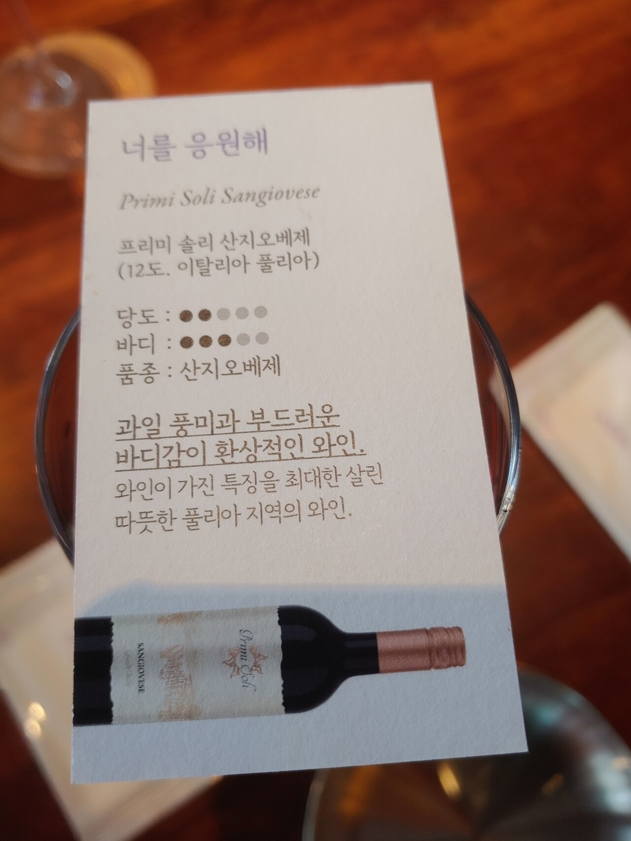 저렇게 주문한 와인의 스펙카드를 올려주는 센스가 좋더라구요