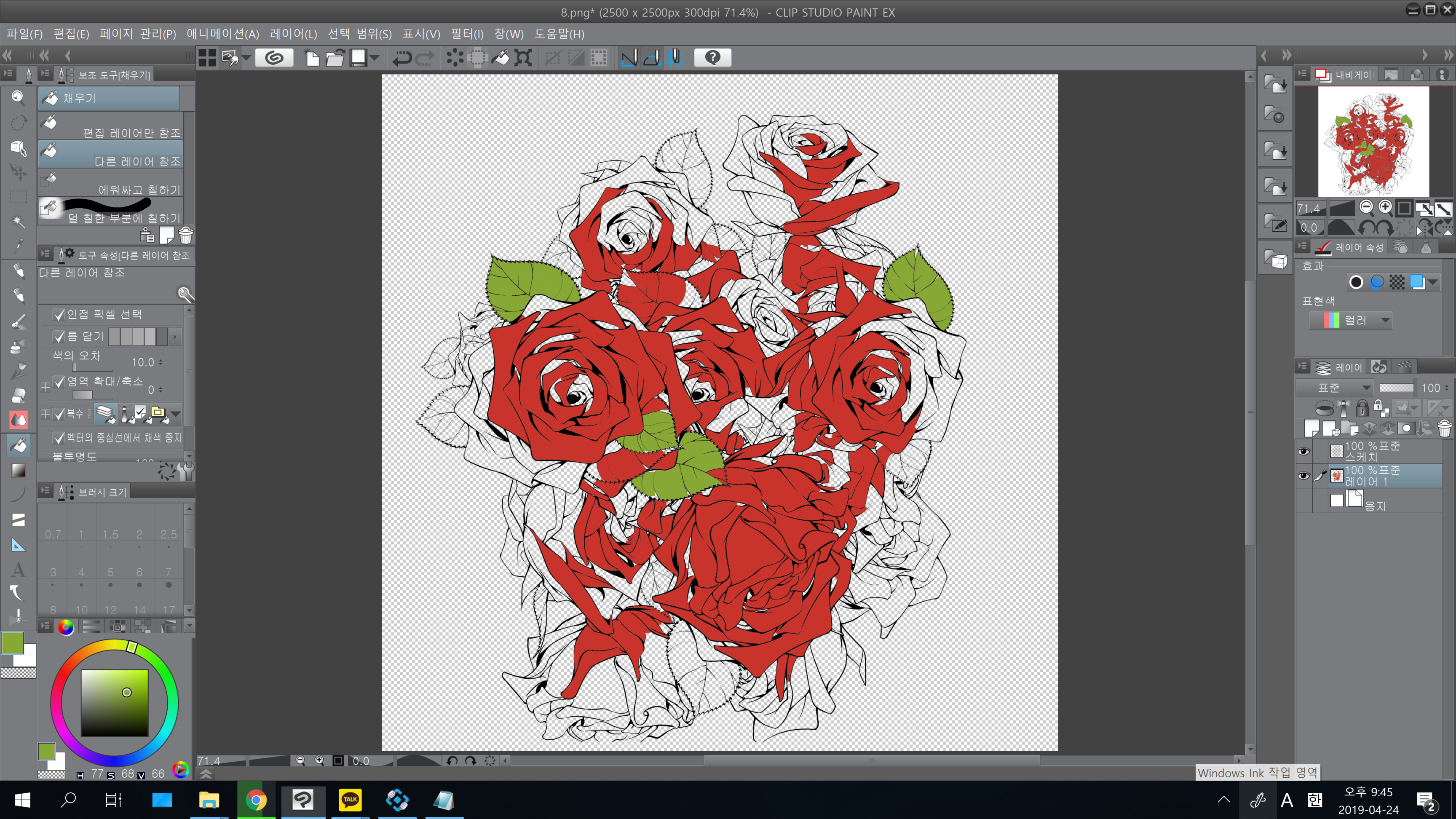 그리고 이 기능을 통해 소재 브러쉬도 깔끔하게 채색이 가능합니다.