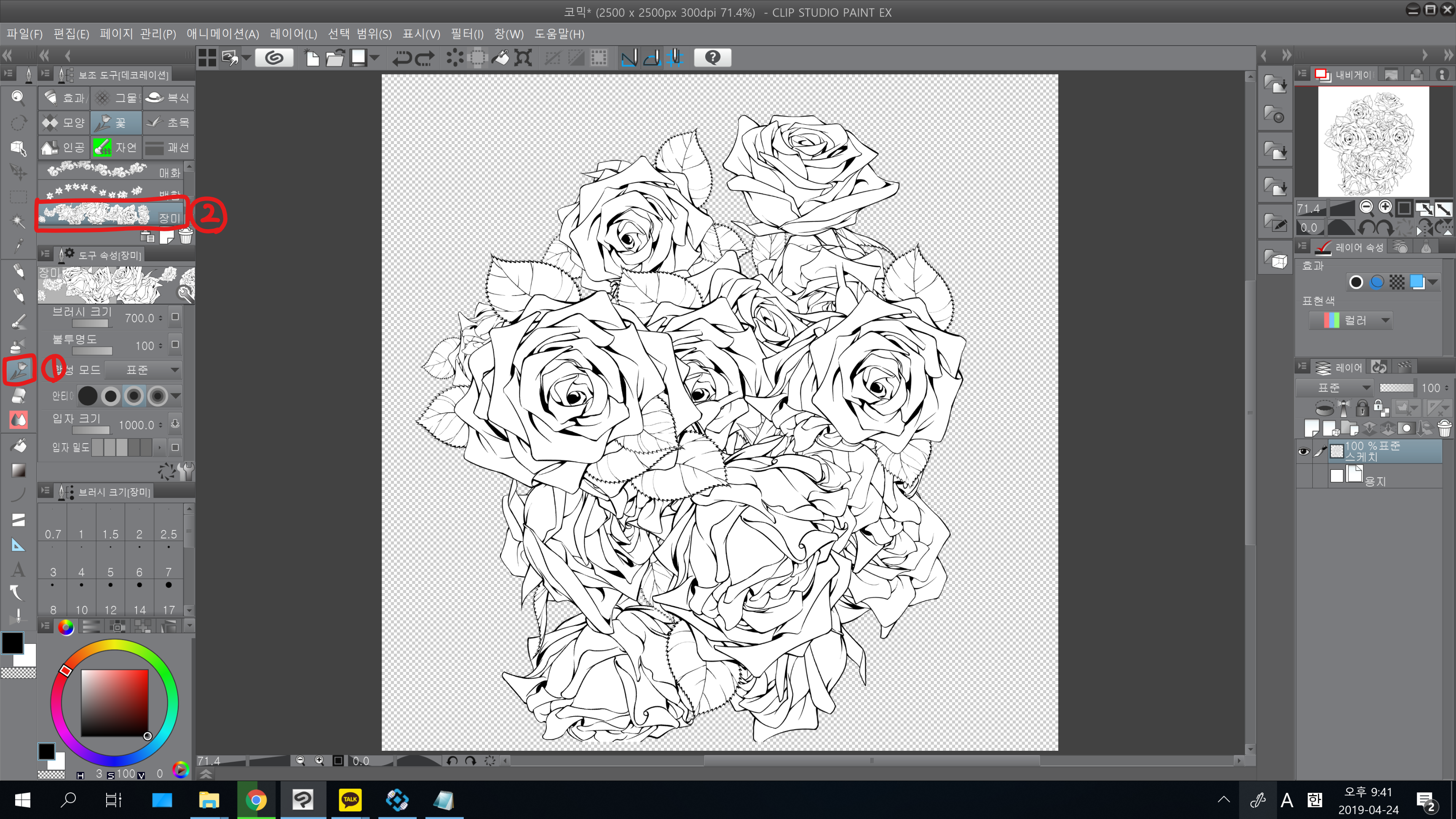 이 브러쉬로 슥 그으면 위와같이 장미들이 그려지는데,