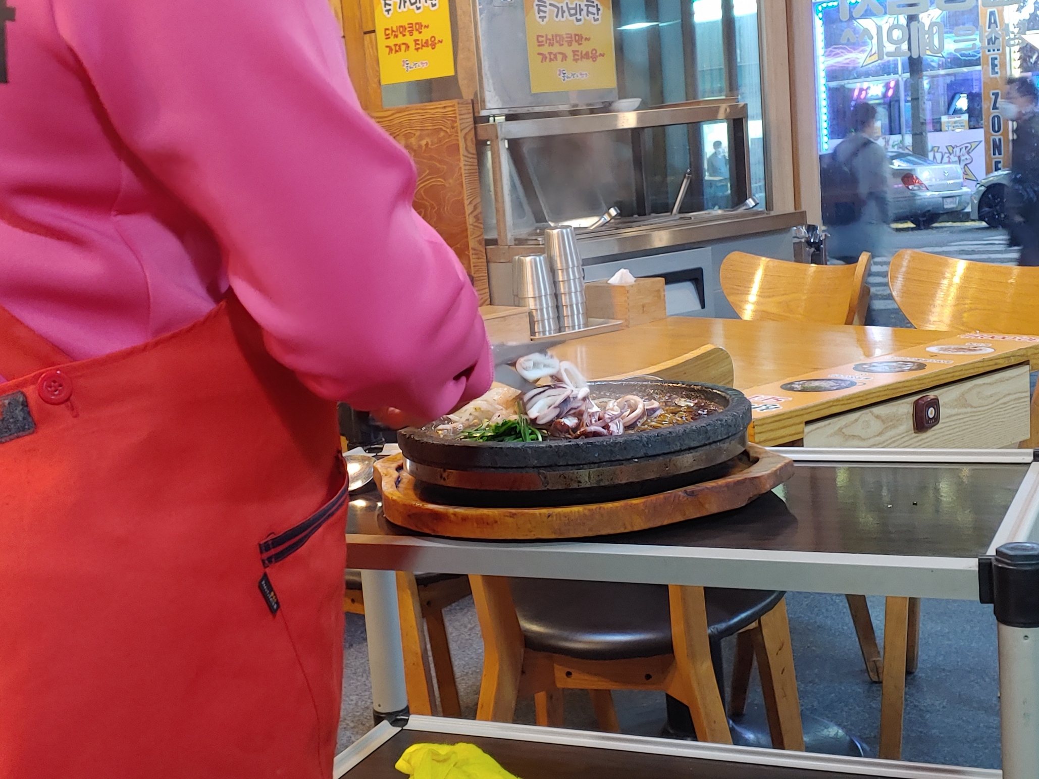 그럼 돌판 열기에 지글지글 볶아(?)진다