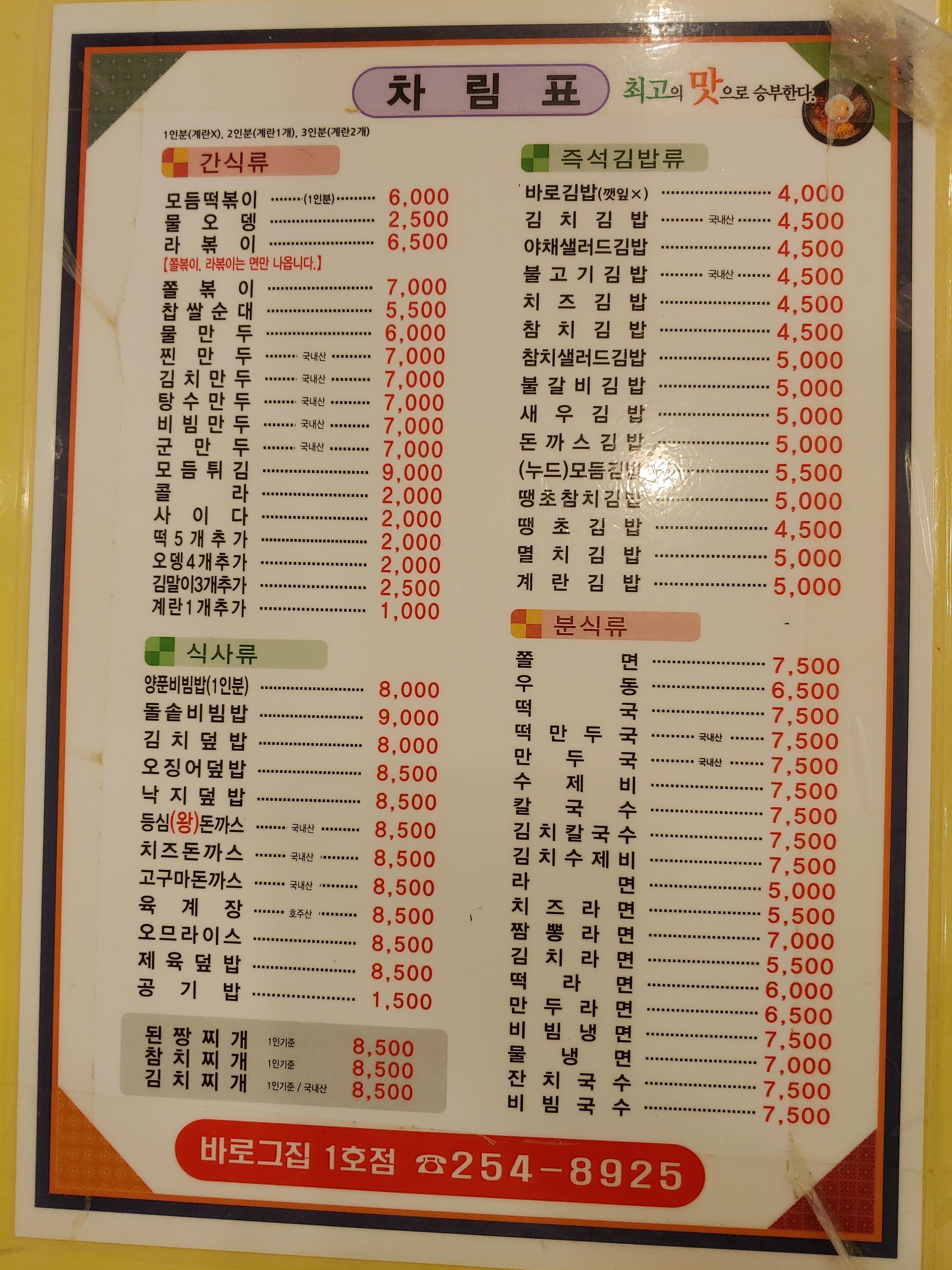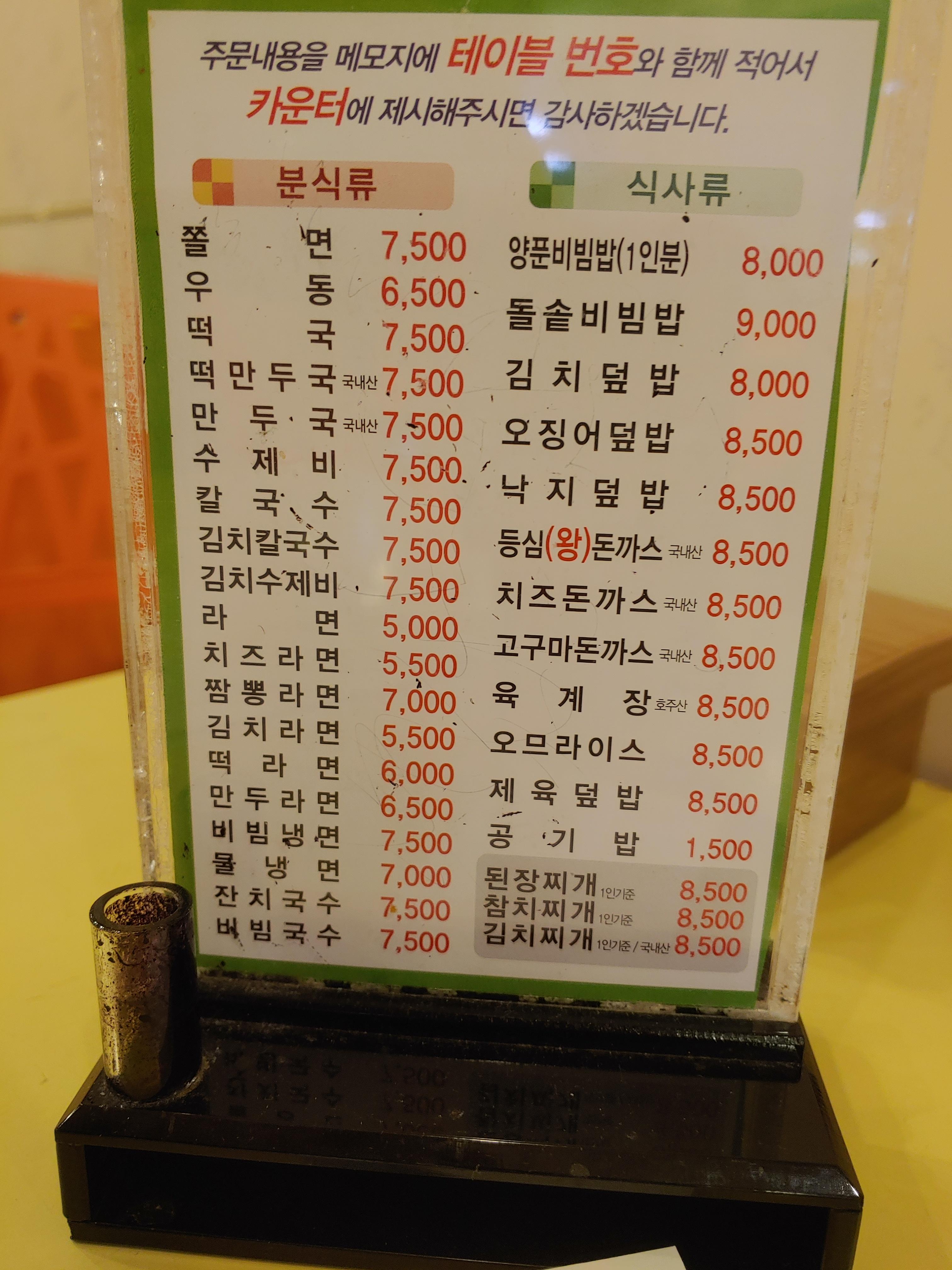 분식점 수준의 가격은 아닌듯