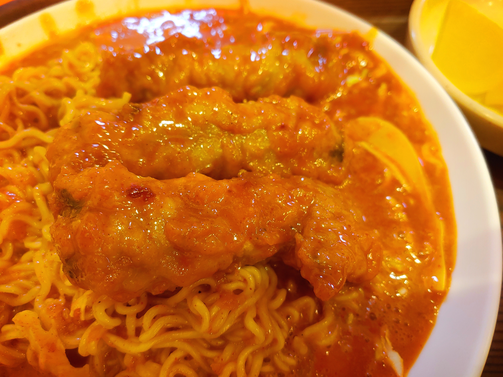 꾸덕한 느낌의 면과 김말이