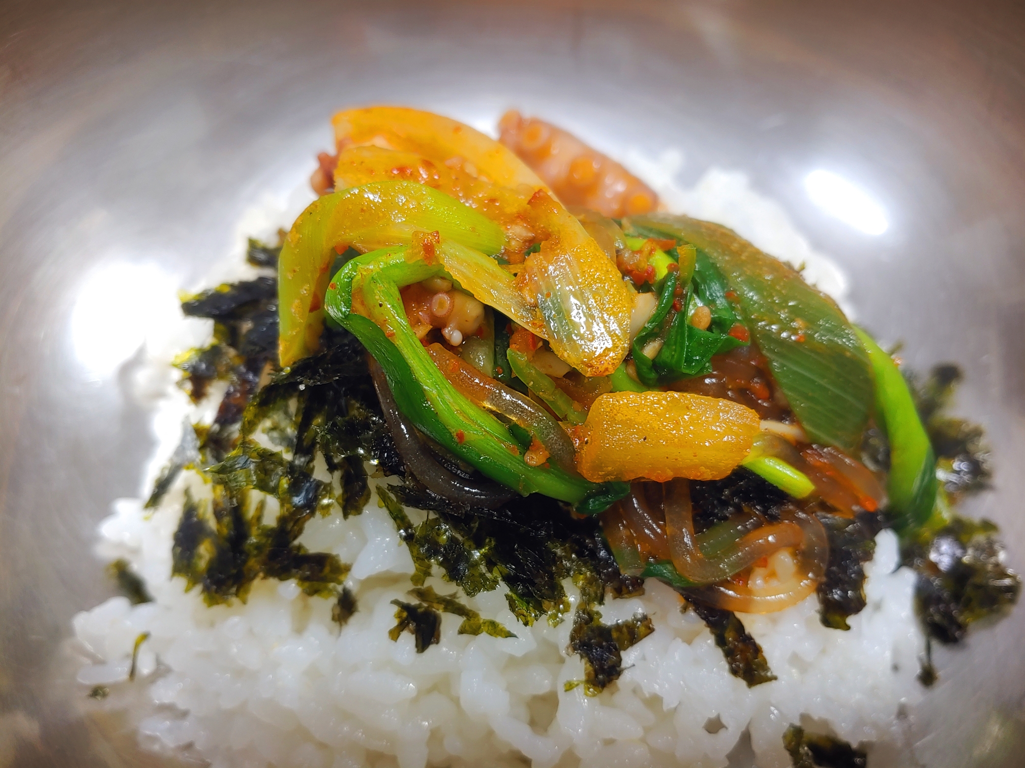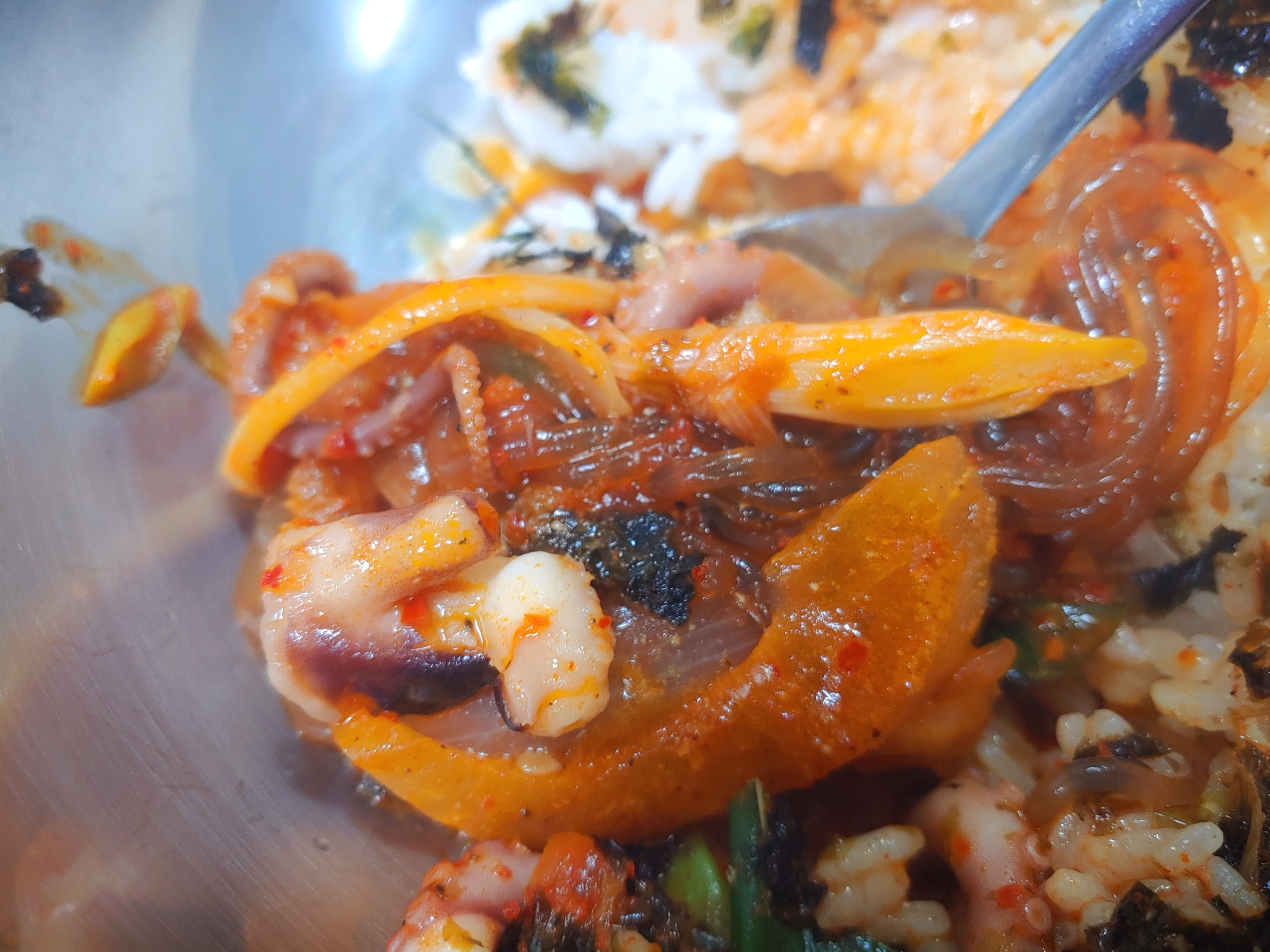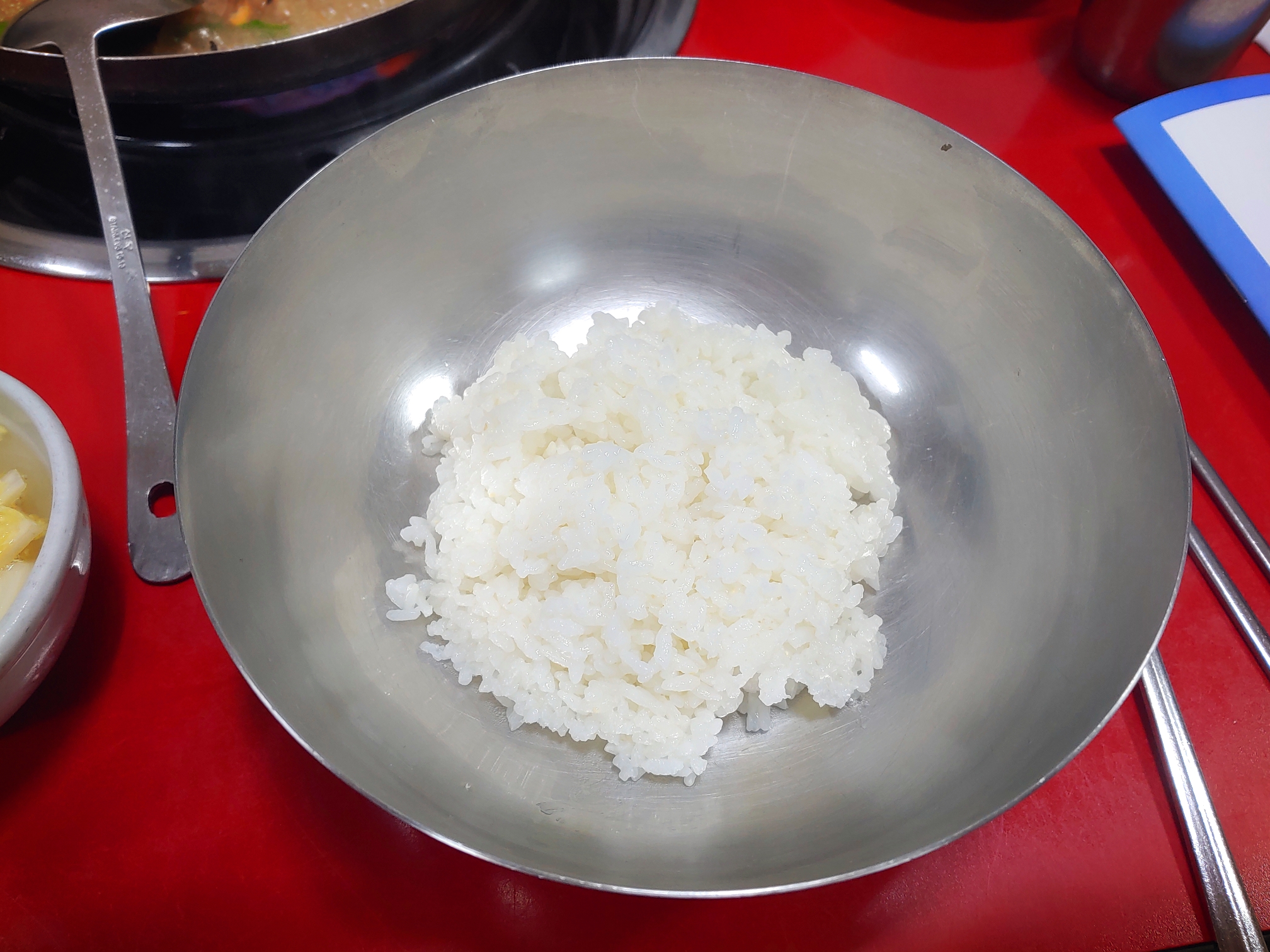낙지전골의 매콤함을 다스리는 용도이다