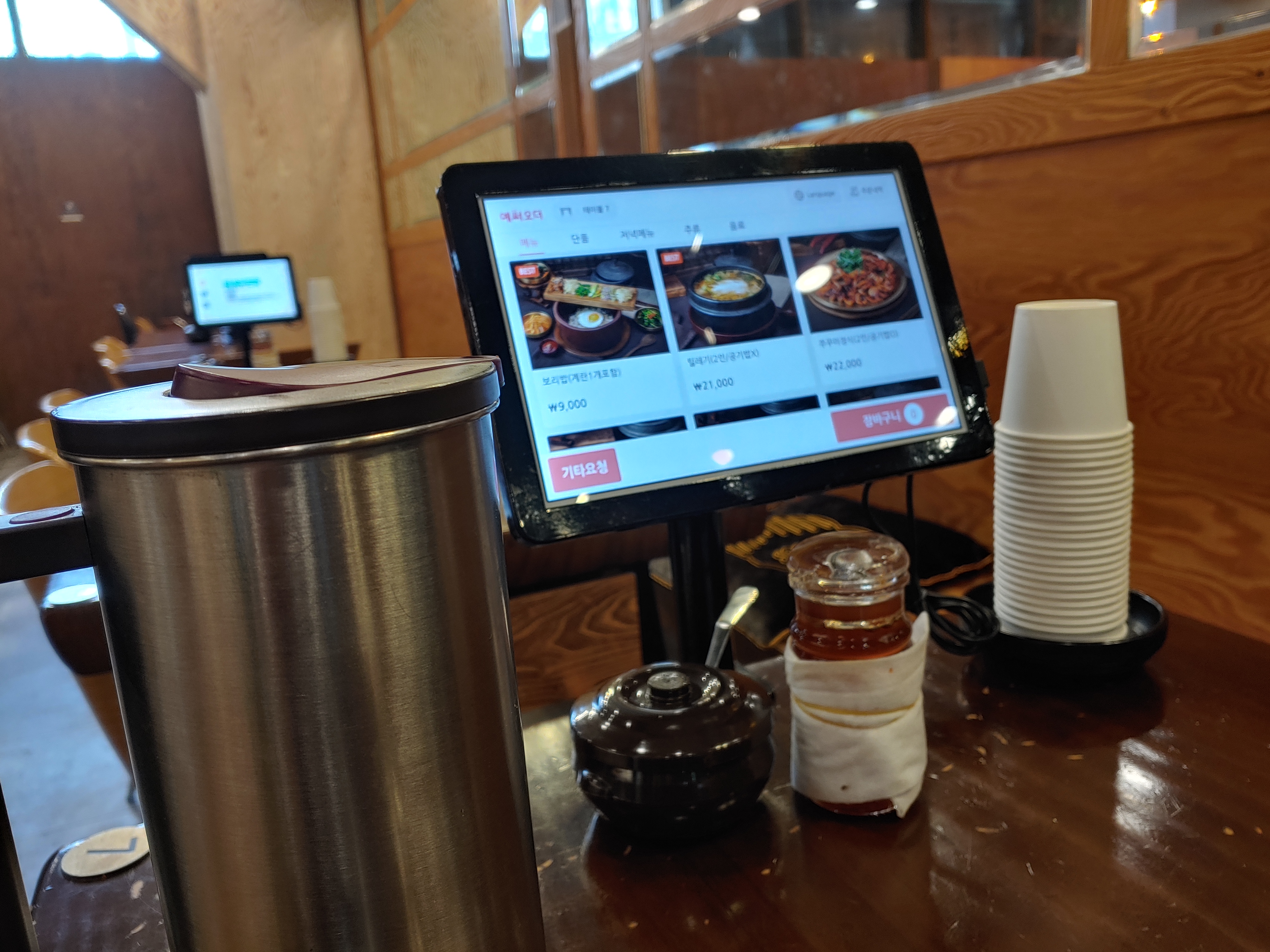 태블릿으로 주문한다.