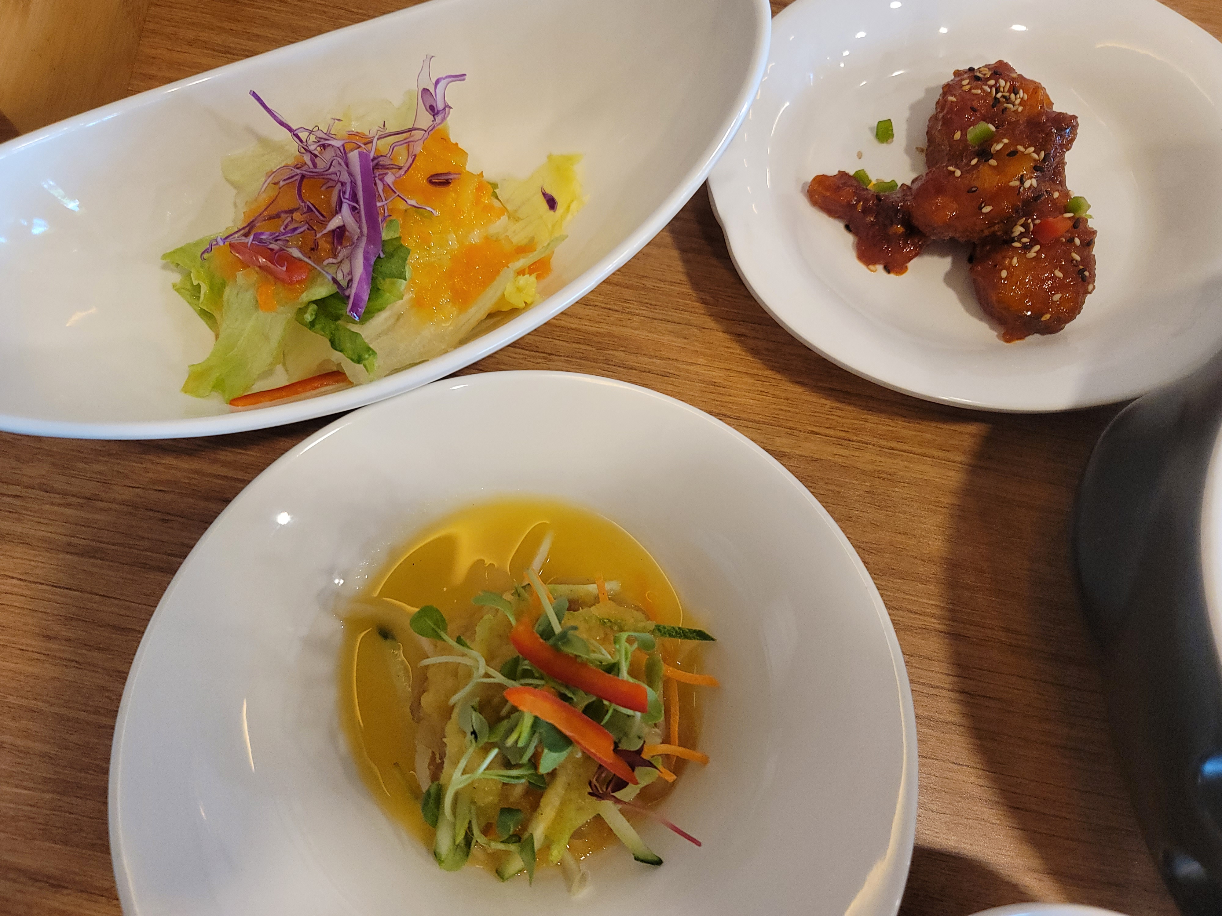 코다리와 야채무침, 샐러드는 단맛이 강한 편이라 개인적으로는 좀 아쉬웠다.