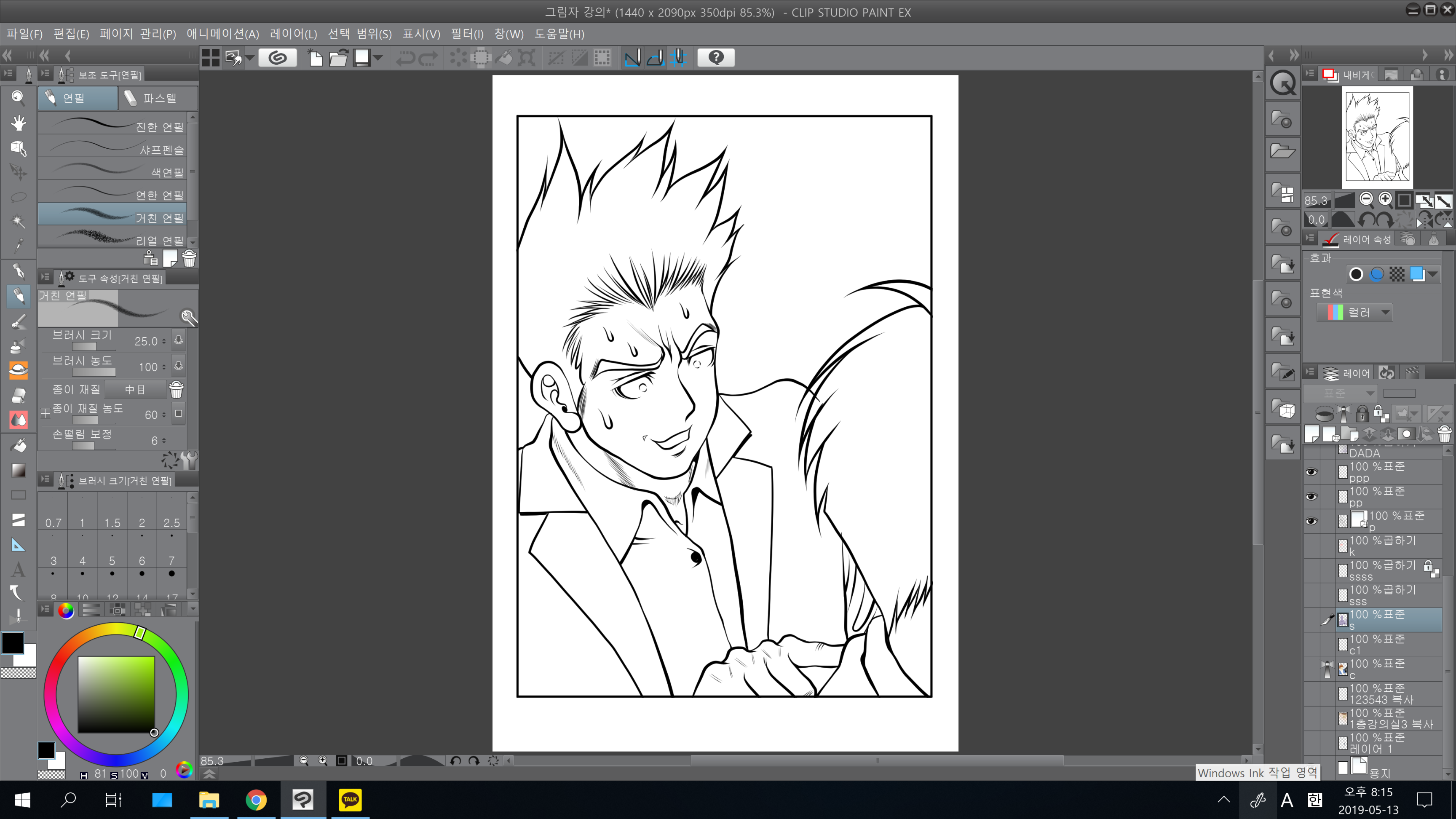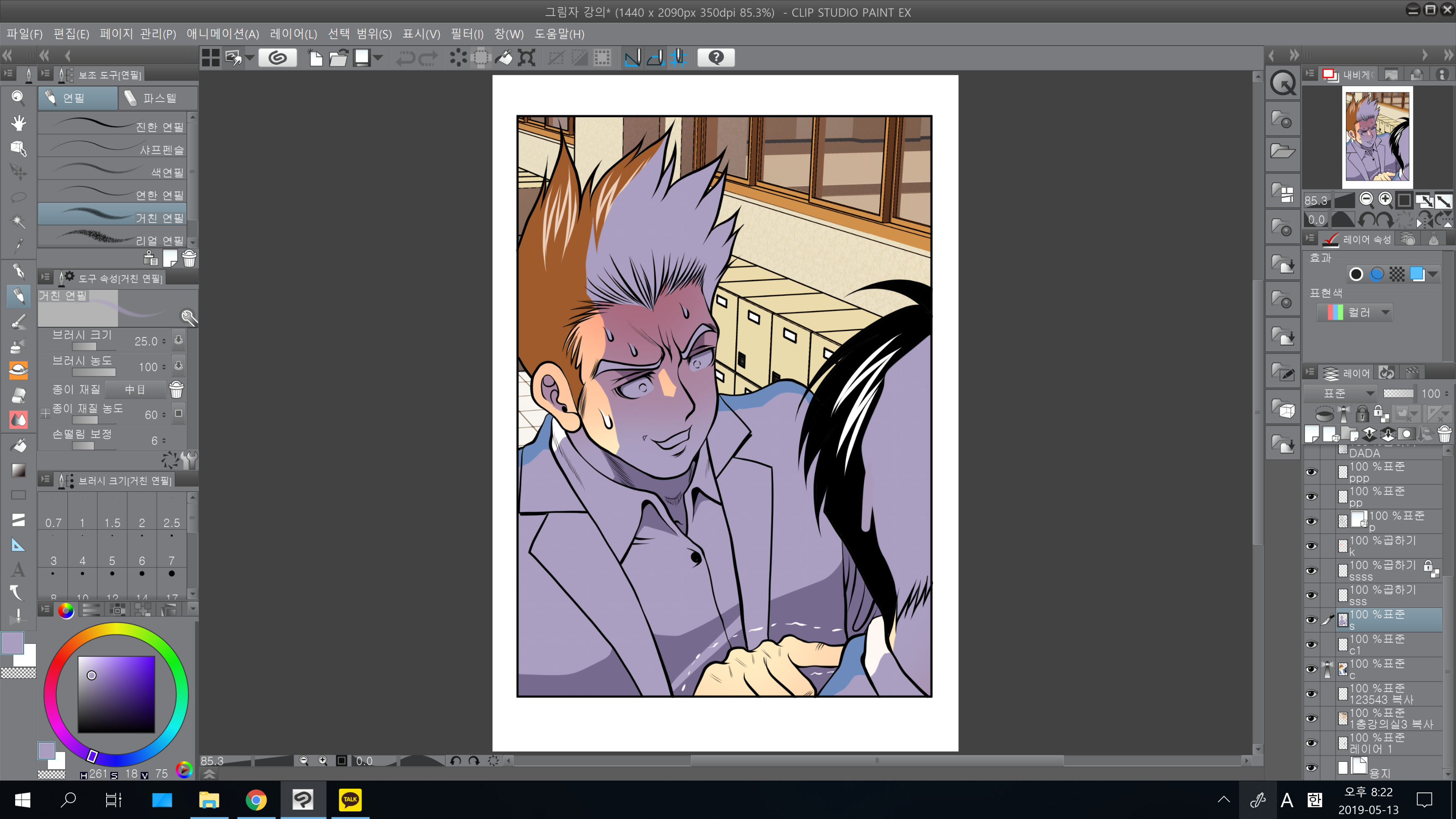 그림자 레이어는 펜터치 레이어와 채색레이어 사이에 위치해줍니다. 위에서부터 펜터치 레이어-그림자레이어-채색레이어 입니다.